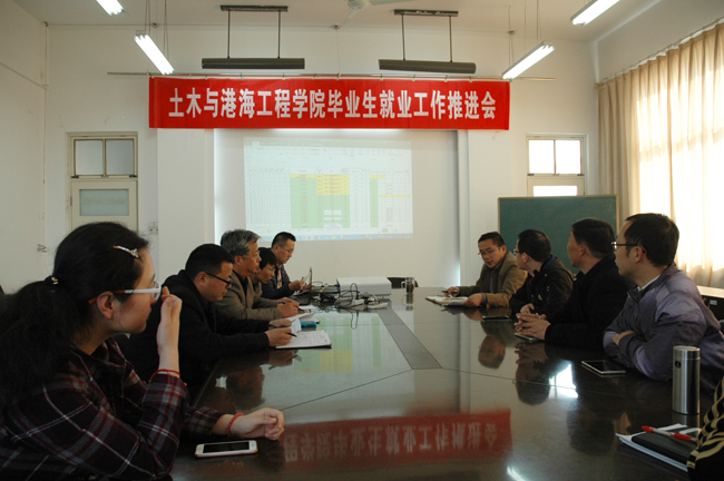 为切实做好毕业生就业工作,推进毕业生更好就业,土木与港海工程学院于4月12日下午,在会议室召开2017届毕业生就业工作推进会。学院全体领导、毕业班班主任、就业秘书郭利参加会议,会议由党委副书记李明金主持。